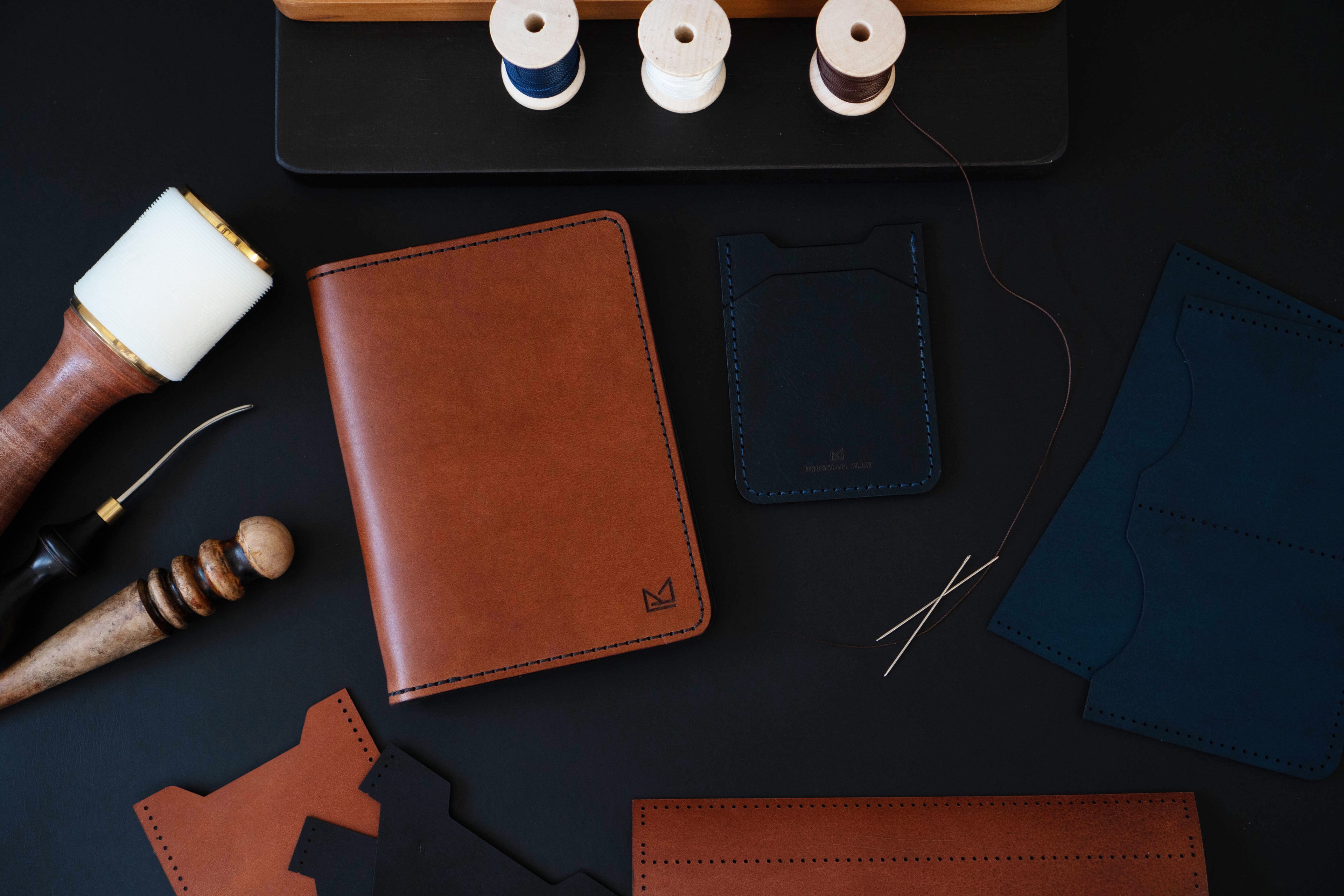We are Prussian Blue. We create premium handcrafted leather goods that blend quality full-grain vegetable-tanned leather, the highest quality there is, with modern aesthetics, minimalist designs, and personal style. Our pieces are handcrafted in the USA and are built to reflect simplicity, durability, and functionality. For business or life's adventures, carry what matters.